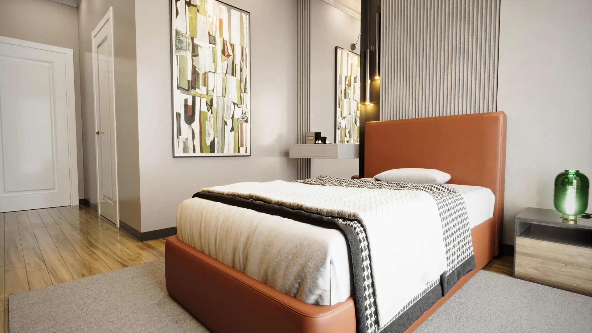 Modern ve dinamik bir yaklaşımla ele aldığımız bu genç yatak odası projesi, hem çalışma hem de dinlenme alanlarını optimize ederek konforlu bir yaşam alanı sunuyor. Tasarımda kullanılan soft renk paleti ve ergonomik mobilya seçimleri, odanın geniş ve ferah görünmesini sağlarken, özel aydınlatma detaylarıyla mekanda derinlik ve karakter oluşturulmuştur.
