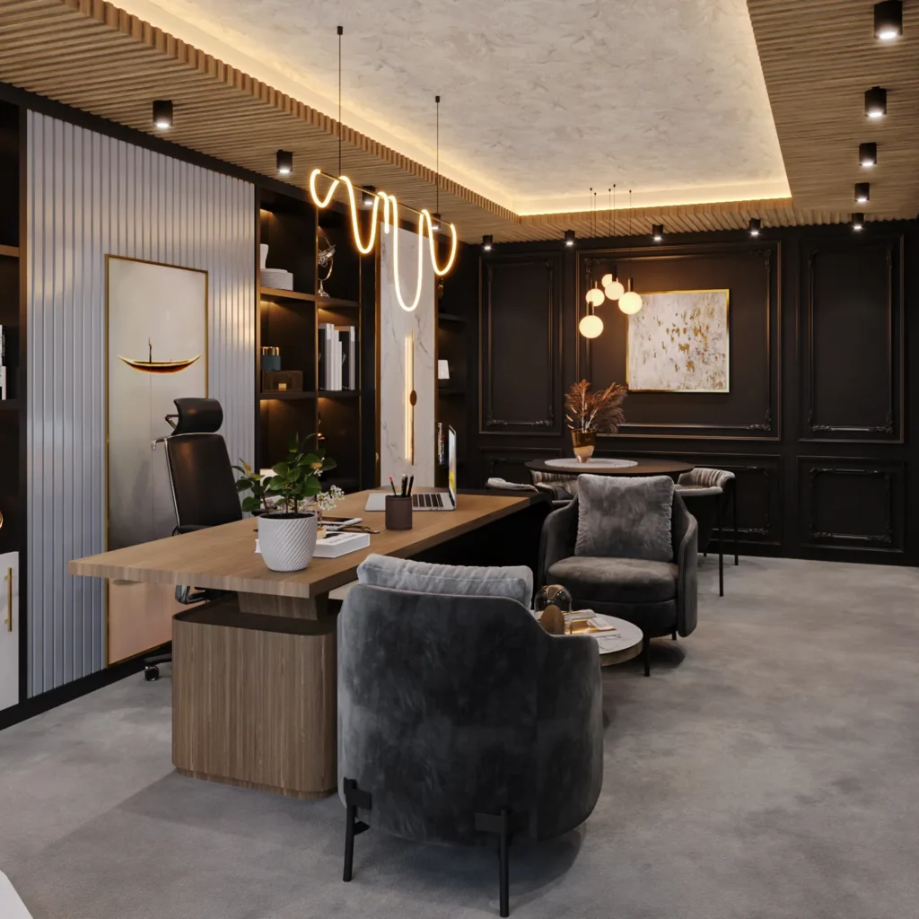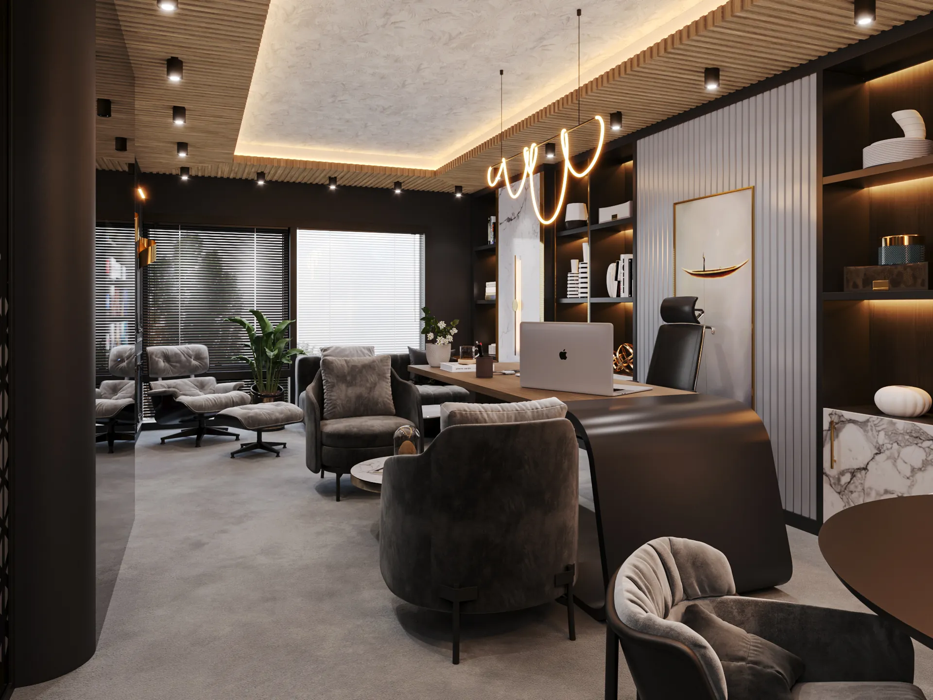 Modern ofis tasarımı projemiz, iş dünyasının dinamik ihtiyaçlarını estetik ve fonksiyonellikle birleştirerek çalışan verimliliğini ön plana çıkarıyor. Minimalist detaylar, ergonomik mobilya seçimleri ve doğal ışığı maksimize eden yerleşim planıyla, çağdaş bir çalışma alanı atmosferi yaratmayı hedefledik. Her bir detay, kurumsal kimliği yansıtan sofistike bir mimari anlayışla titizlikle işlenmiştir.